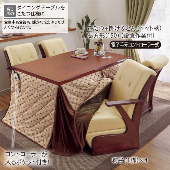 ※天然木使用商品は、木目・節など見た感じや色合いが誌面と多少異なる場合がありますのでご了承ください。※通電した家電・家具(ただし、商品不良を除く)は返品できません。※電気代は1kW(1000W)31円/時間で計算しています。表示の電気代はあくまで目安ですのでご了承ください。※生地幅の関係上ハギ(つぎ目)が入ることがございます。また裁断の都合により柄の出方が多少異なりますので、あらかじめご了承ください。※ハイタイプのこたつは、椅子を動かした際に床面が傷つく場合がありますので、カーペット等を敷いた上でのご使用をおすすめします。※こたつのコードは消耗品です。コードの劣化が見られた場合は買い換えてください。中間スイッチ式は一般の家電量販店で購入できます。手元コントローラー式のお取り替えが必要な場合は、問い合わせ専用無料ダイヤル(0120−39−7557)までお問い合わせください。