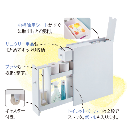トイレットペーパーは2段でストック。ボトルも入ります。