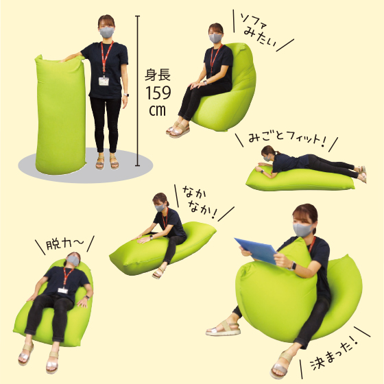 体を預けるだけで勝手にフィット!大きなリラックスビーズクッション。