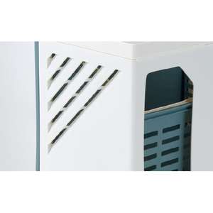湿気がこもりにくいメッシュタイプのボックスに、洗濯物を分別収納。スリムサイズで場所もとらず、キャスター付きで移動も簡単。