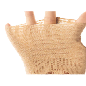 透けるほどの薄さと肌に馴染む色合いで、ふだん使いしやすいサポーター。強弱のパワー編地とV字のラインが、テーピングのように支えます。