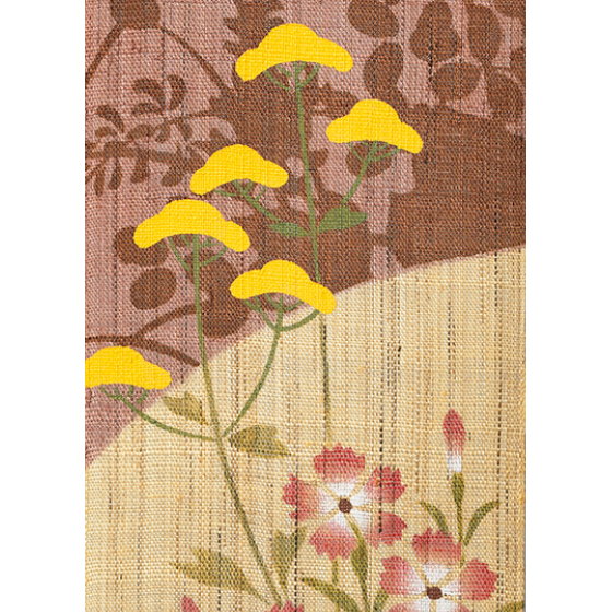 趣深い麻の手織り布に、手描きや手彩色、ぼかし染め、引き染め、型染めなどの技を駆使して作り上げています。