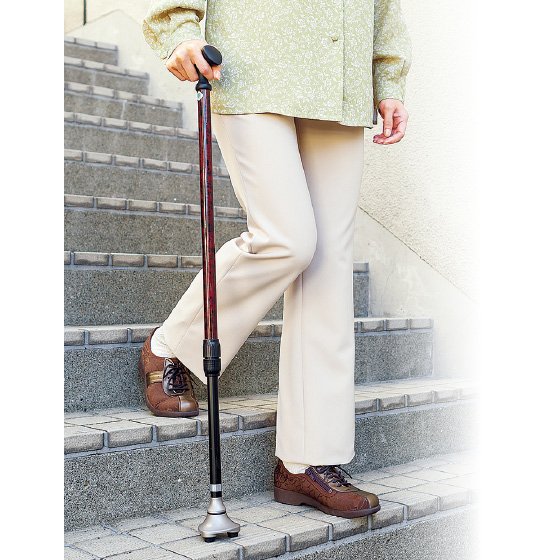 杖先と地面との接地面が広く、溝に落ちにくい。