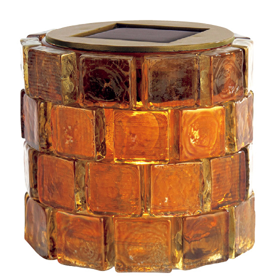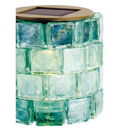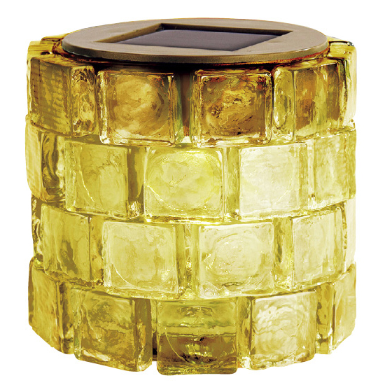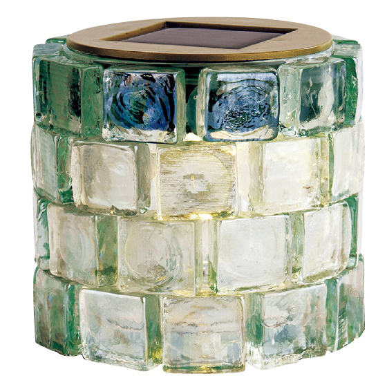 配線不要で設置も簡単。昼間は太陽の光で内蔵の充電池に蓄電し、暗くなると自動的に点灯します。ガラスタイルの輝きがお庭や玄関まわりをほのかに照らします。