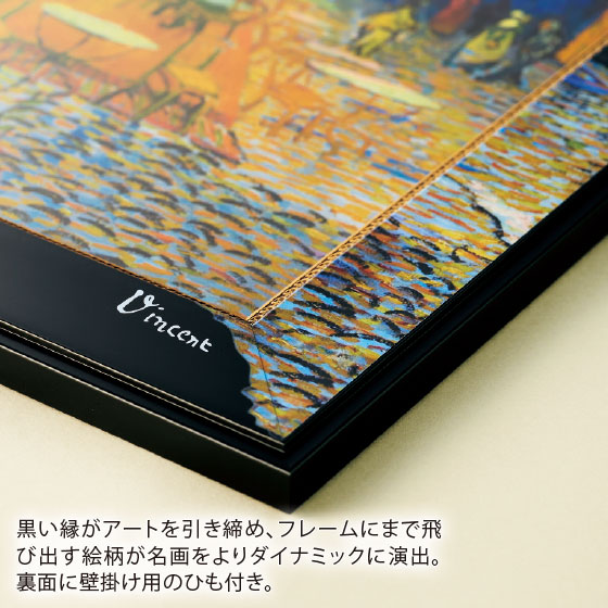 フレームにまで絵柄が飛び出す名画がアートの世界に誘います。縦型は階段や吹き抜けなど縦長の空間に、横型は家具に合わせて飾りやすい形。並べて飾ればさらに豪華な印象になります。