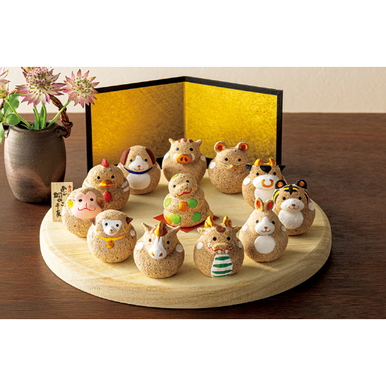 ●サイズ:人形=幅4×奥3.5×高4〜5cm、飾り台=径25×高1.5cm、屏風=幅20×高8.5cm