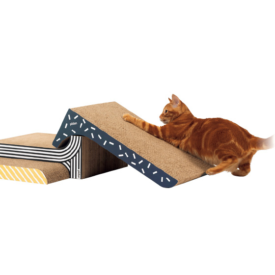 それぞれ取り外して使用できる、ダンボール製爪とぎの3点セット。