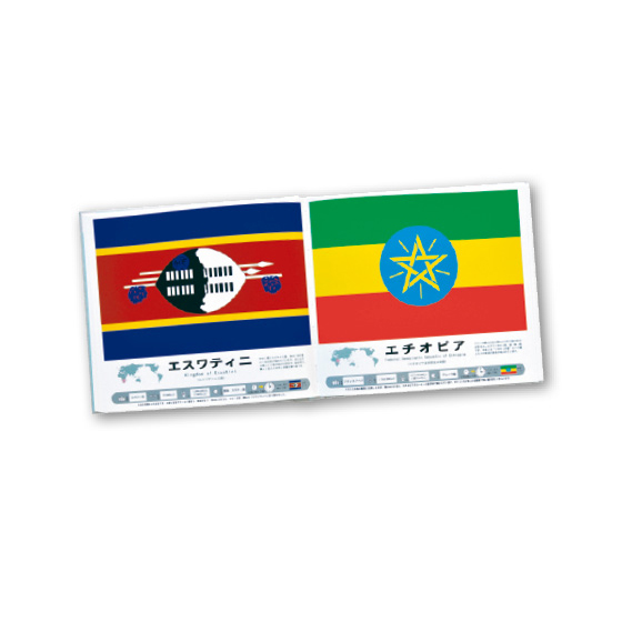 デザインの細部や色合いがしっかり伝わるよう、国旗を大きく掲載。その国を理解するために必要な情報をわかりやすくまとめました。1冊読み終える頃には、まるで世界一周の旅をしたような気持ちになります。見たい国がすぐ探せる「あいうえお順」配列です。