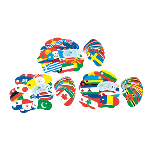 世界の国旗を子どもが手に取りやすいそら豆形のカードにしました。めくったり、並べたり、飾ったり。遊び方は自由自在。鮮やかな色彩の国旗から世界への興味が広がります。