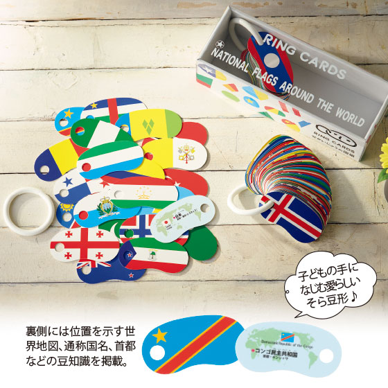 色鮮やかな世界中の国旗をカードに。3つのリングに通してお届けします。