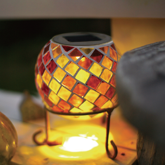 太陽光で蓄電。モザイクガラスが美しいソーラーライト。