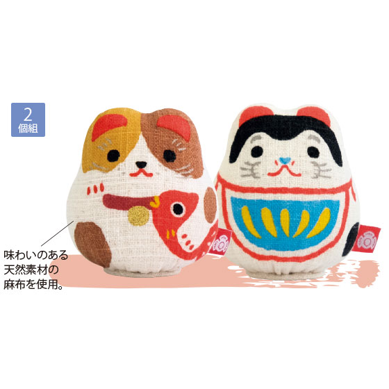 縁起の良い鯛持ちの三毛招き猫は「金運」や「出世運」向上、狛犬は「安産祈願」や「魔除け」の力を持つといわれるモチーフ。
