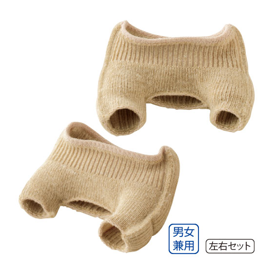 外反母趾や内反小趾(ないはんしょうし)に伴って生じる腱膜瘤(けんまくりゅう)と呼ばれるこぶが、靴にあたってツライ!そんなお悩みに。厚手の生地がクッション代わりになり、やさしく守ります。