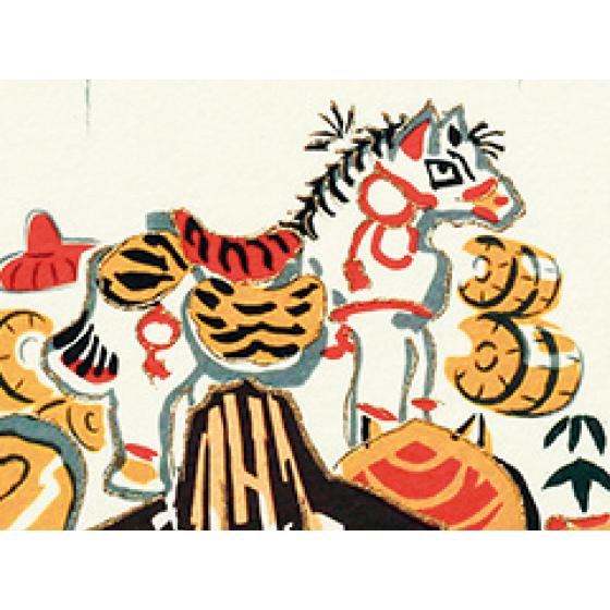 西本願寺の絵所を預かる家系に生まれ、木版画の普及に尽力。その徳力の作品の中からめでたい干支の画を選び、職人がていねいに手摺りしました。