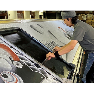 きらびやかな箔押しが目を奪う、手ぬぐいのタペストリー。上質な手ぬぐい地に、1枚1枚手作業による染色をほどこしています。オリジナルの「箔押し手ぬぐい」。手洗いしても剥がれ落ちる心配はありません。