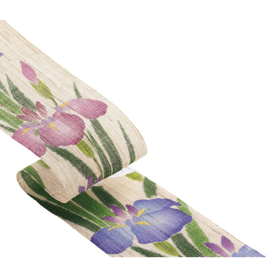 麻の手織り布に、手描き・手彩色・ぼかし染め・引き染めや金彩を施した春らしい5柄を揃えました。1本でも、複数柄で飾っても楽しめる幅感です。
