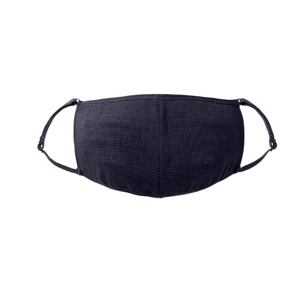 ラクに呼吸できる立体形状。肌になめらかなシルクに伸縮性をもたせ、顔にフィット。耳掛けひもは長さが調節できます。