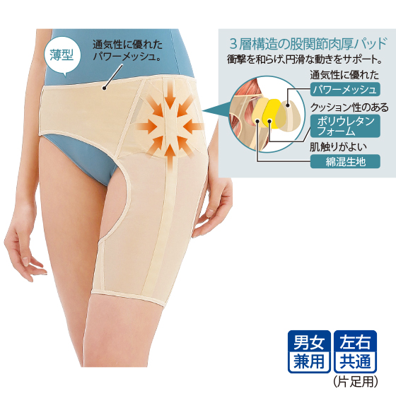 3層構造の股関節肉厚パッドが衝撃を和らげ、円滑な動きをサポートします。