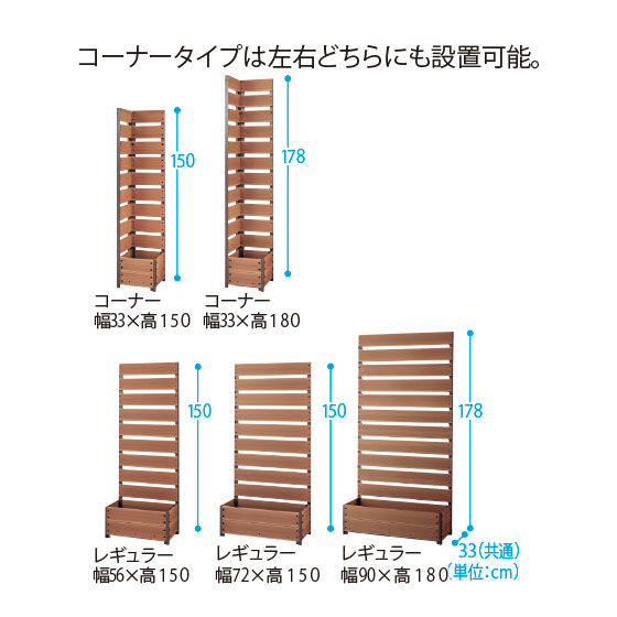 ※設置場所やプランター部への収納物などにより安定性が変わります。適合鉢:8号鉢×2個(幅56・72)・3個(幅90)・1個(コーナー)