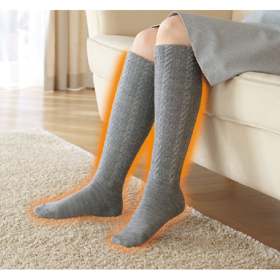 重ね履きのような暖かさ!ふんわり2重編みのハイソックス。