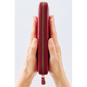 ●仕様:開閉=ラウンドファスナー式、ポケット=内部に札入れ1個・カード入れ7個・オープン式1個・ホック式小銭入れ1個(コインスルー仕様)付き