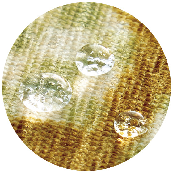 やわらかなモール糸を使い、光沢感と暖かみがあるシェニール織。はっ水加工を施しているので、うっかり水をこぼしてもサッと拭き取れます。毛足が短く、お手入れ簡単。掃除機もかけやすい。