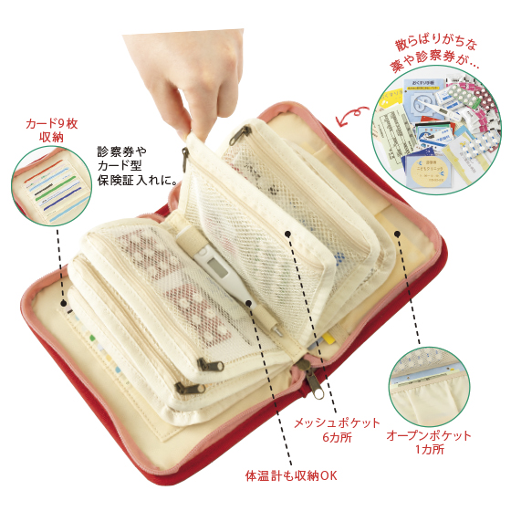 ●仕様:開閉=ラウンドファスナー式、ポケット=内部にオープン式1個・メッシュポケット6個・カード入れ9個付き