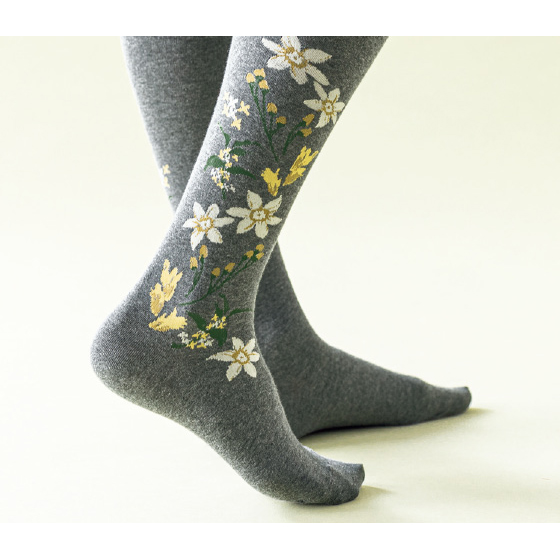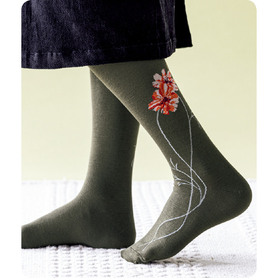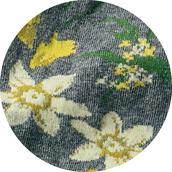 目が細かく肌触りもよいハイゲージ編みで、繊細なボタニカル柄を表現。