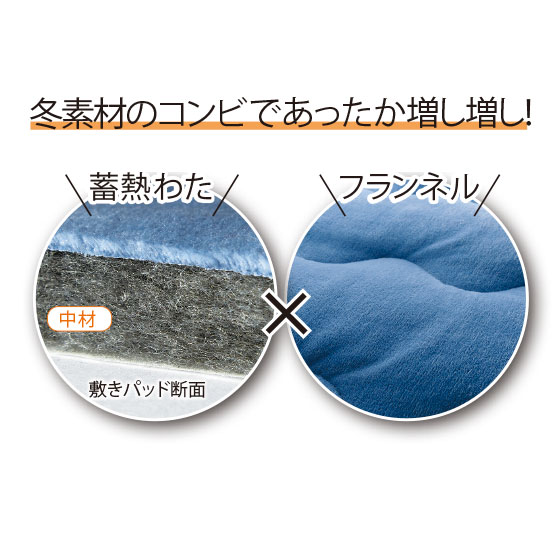 肌面はふんわりやわらかくて暖かいフランネル。中材は熱を蓄える特殊繊維でぬくもりをキープして、寒い季節の快適な眠りをサポート!