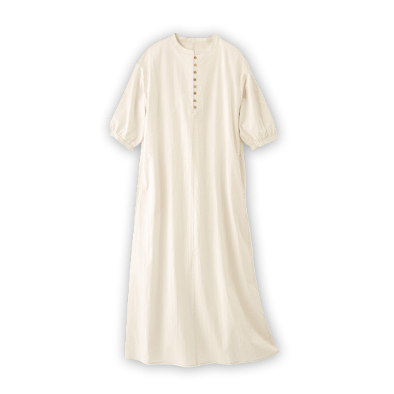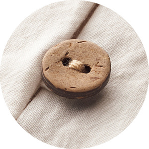 前開きのウッドボタンがアクセント。