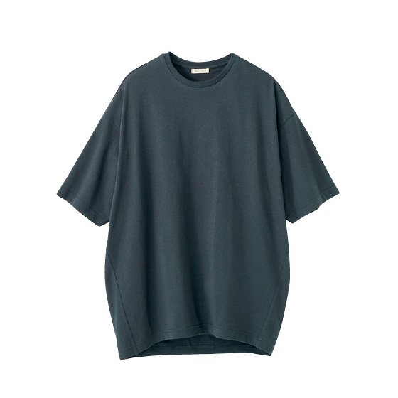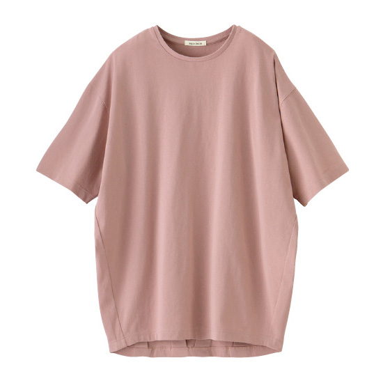 コットン素材のゆったりプルオーバー。後ろのタック使いと長めの丈感で腰回りをカバー。