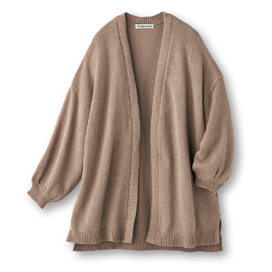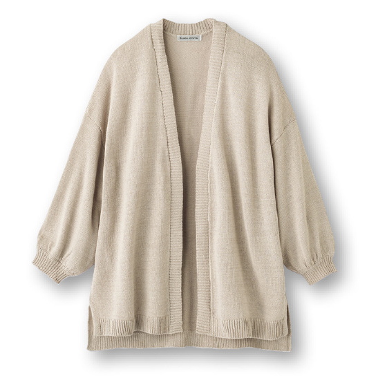 ほのかなつやで上品見えするシンプルカーデ。ゆるっと身幅がこなれ感で、何にでも着合わせやすくて大活躍。ふっくら長めの袖が二の腕をカバーして、冷房対策にも便利。