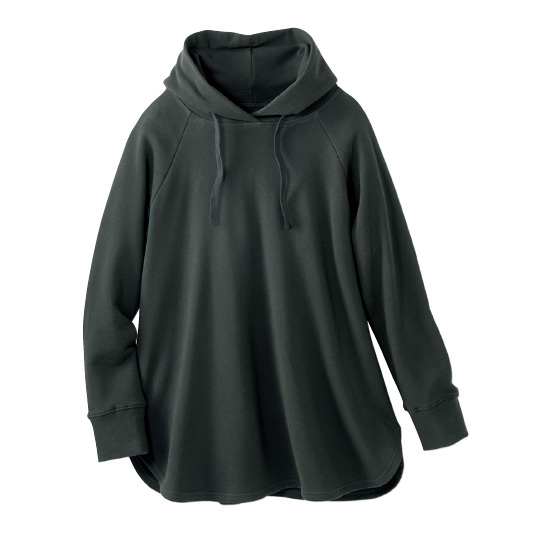 アメリカの大地で育ったコットンを使った、ふっくらした裏毛生地。フレア感のある長め丈で体形カバーが叶うパーカーをつくりました。やさしげなこなれ感で、毎日コーデが鮮度アップ。