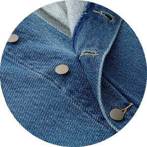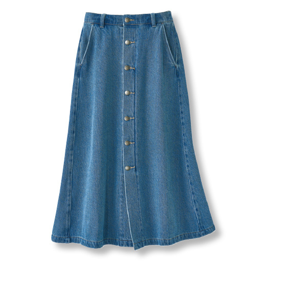 生地内部に空気の層ができる特殊な織りで、ふんわり暖かなデニム生地に。軽くてはきやすく、シルバーボタンが印象を引き締めてくれます。※春秋冬におすすめです。