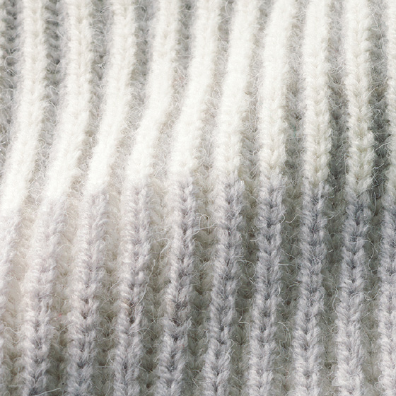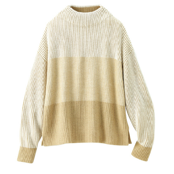 ふわっとやさしい毛吹き感で、グラデがなじみ合うあか抜けニット。両畦編みのざっくりシルエットで、体形も美カバー。