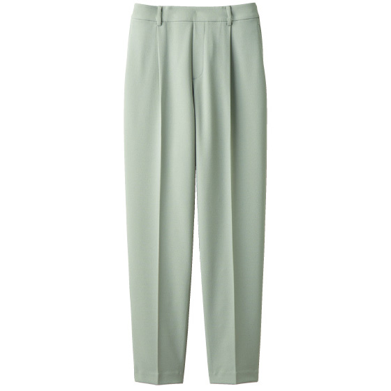 前後バランスや体とパンツの空間を丁寧に調整して、大人が快適にはける設計です。前タックでおなかをカバーして、センタープレスが脚長見せ。ゆとりの腰回りでひざ下は細く、すっきり映えるテーパード。※着用シーズンは通年です。