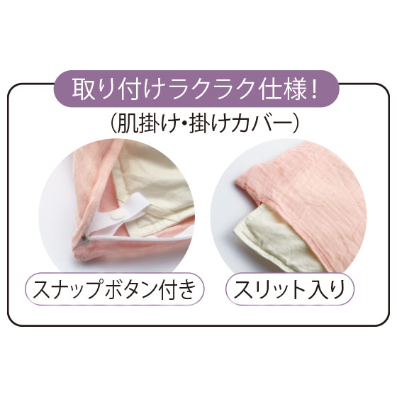 綿ガーゼの2重仕立てカバーは吸汗性・通気性がよく、ふわっと軽やかな肌触りで人気の高い商品です。