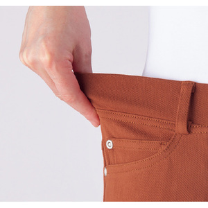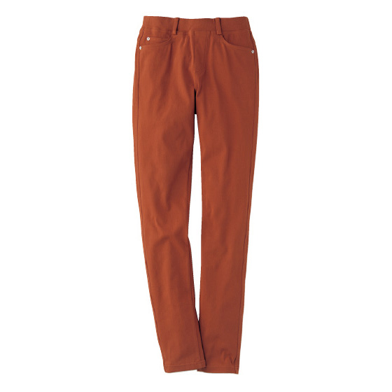 見た目はデニム、でも実はフィット感のよいニット素材で、ラクにはけます。ウエスト総ゴムのプルオンタイプで、脱ぎはきスムーズ。※春夏秋、3シーズン着用できます。