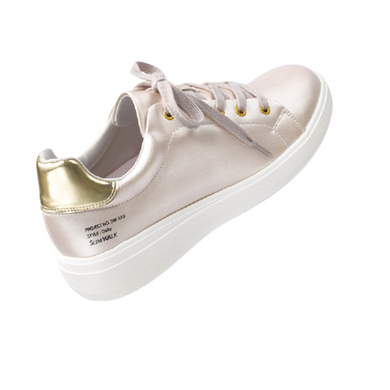 ヒールアップインソールで、美脚見せ効果が期待。クッション性があるので歩きやすく、立体構造によりかかとをホールドし、安定感をサポート。肌への刺激が少ない抗菌素材を使用。かかと部分は約1.5cmの高さ。