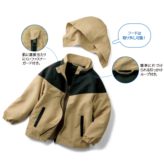 晴れでも、雨でも活躍!はっ水ウインドブレーカー。フードは取り外しできる!