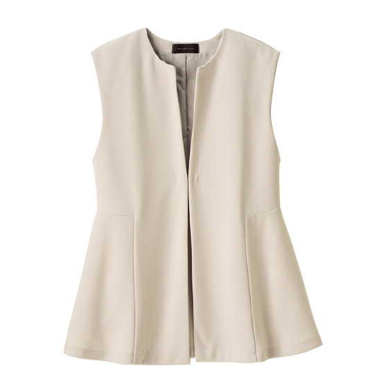 ペプラム切替のフレア感が、上品な印象の華やぎジレ。ジョーゼット風の美カットソーなので、きちんと場面にも着られる映え感です。腰回りをカバーしながら、防シワ素材できれいもキープ。