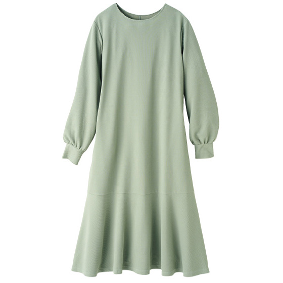 スウェット風に伸びやかで、体の線を拾いにくい人気の生地。美ドレープで着映えするのに、がんがん洗えるタフ素材です。春は揺れる裾フレアのワンピで、気分を上げて外出。