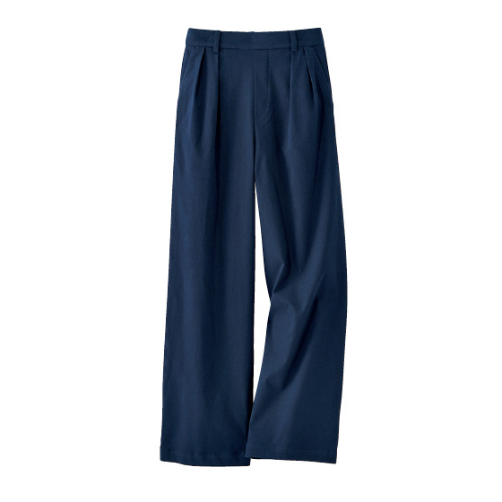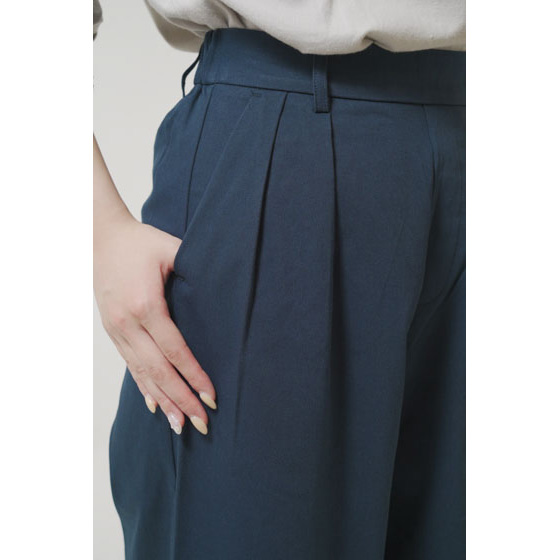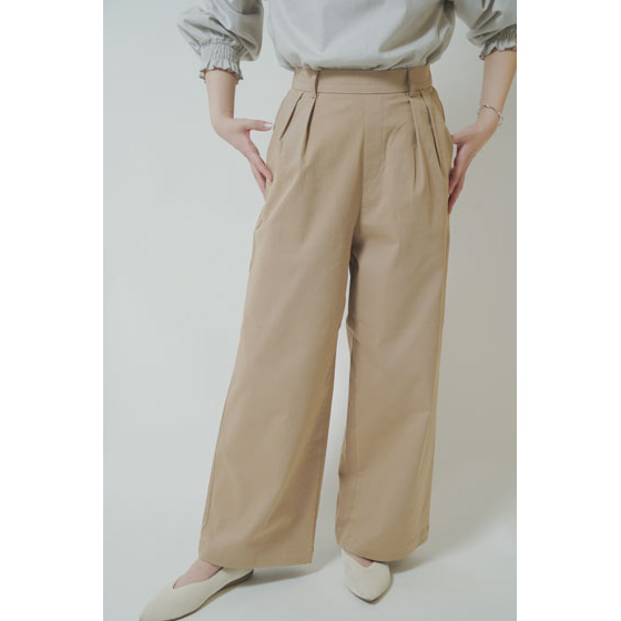 なめらかな肌触りでストレッチも効いた綿混チノ素材。やや光沢感もあるので、きれいめコーデにもぴったり。ワイドシルエットながら、タック入りですっきり見えます。※春夏秋におすすめです。