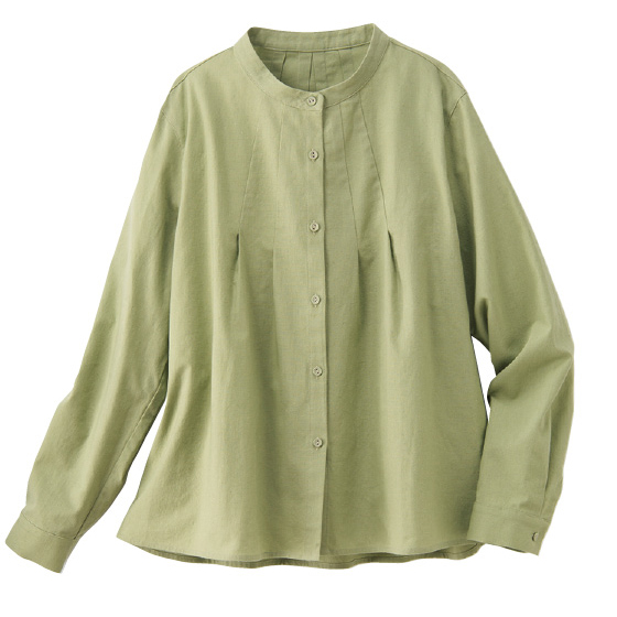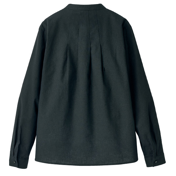 前後の首元から放射線状に施したタックやくるみボタンでこなれた印象に。はおりとしても、ベストと合わせてもコーデがサッと決まります。