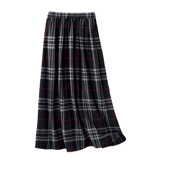 大柄チェックで華やかに。ふんわり柔らかく、ほどよい厚みで暖かなはき心地。タック&ギャザーのボリューム感で体形カバーも叶います。※春秋冬、3シーズン着用できます。