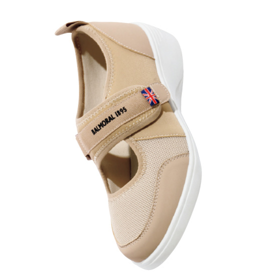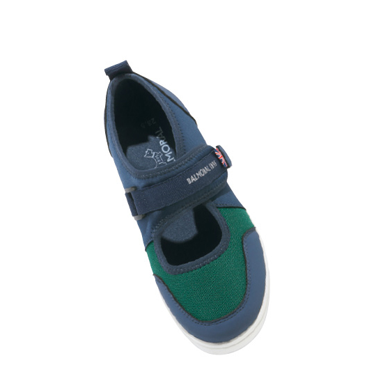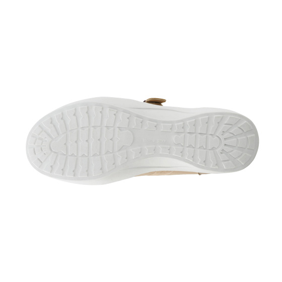 かかとやつま先はしっかりホールドしながら、ほどよい抜け感で爽やかに。安定感のあるソールで歩きやすいのもうれしい。
