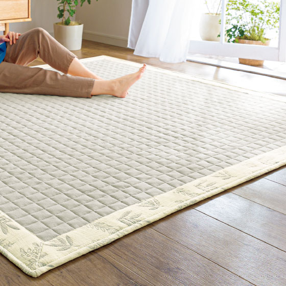 うちは畳のリビングです。横になると少しちくっとするので、何か良い敷物はないかなと探していました.少しゴロンとしてみると、サラッとして程よい厚みで寝心地がよかったです。汗をかいていても、ベタベタしなくて良いです.洗いやすいように185×185のサイズにしてよかったです。