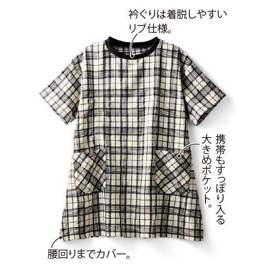 ●素材:ポリエステル80%・綿15%・レーヨン5%(織物、平織)、リブ=ポリエステル98%・ポリウレタン2%(ニット、リブ)