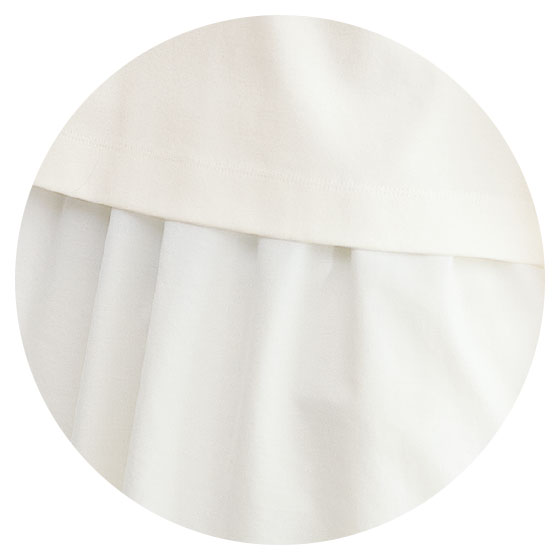 ●素材:綿100%(ニット、スムース、シルケット加工)、裾部分=ポリエステル100%(織物、平織)