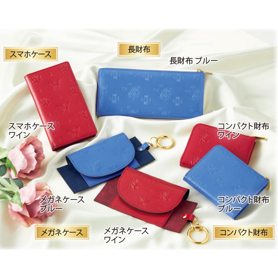 ●素材:牛革、裏地=長財布・コンパクト財布/レーヨン・牛革、スマホケース・メガネケース/ポリエステル・牛革